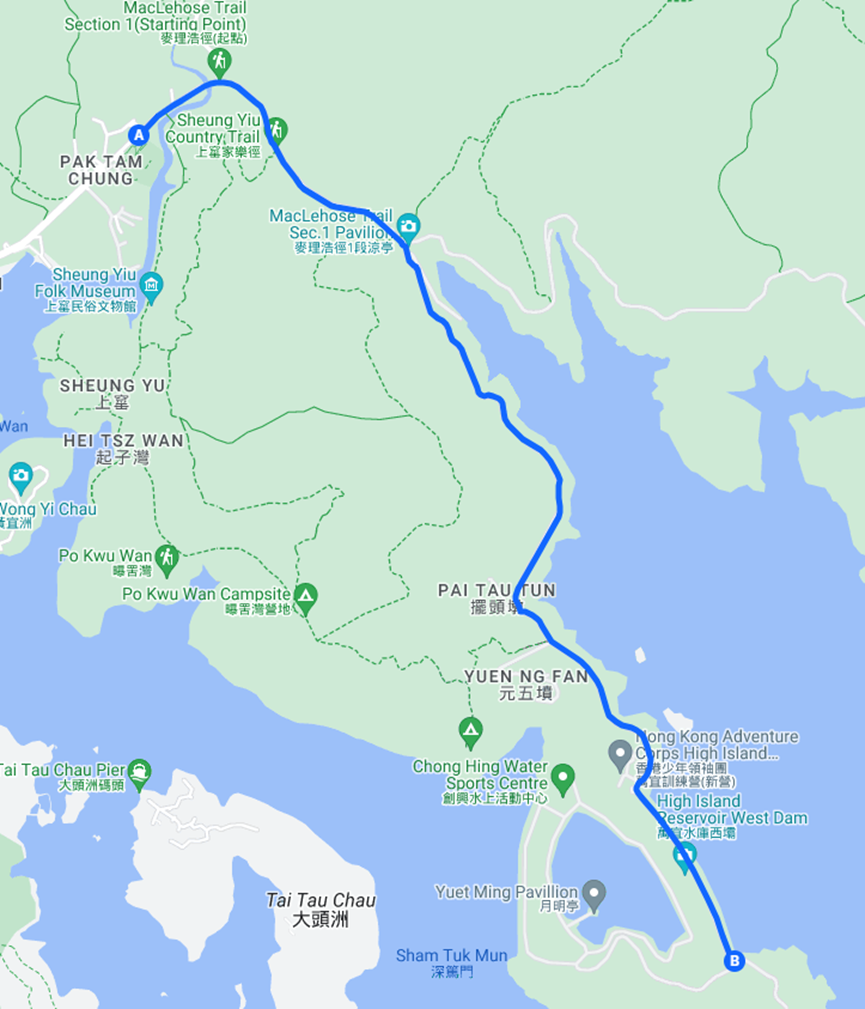 Route: (A) Pak Tam Chung PHAB Site <-> MacLehose Trail Section 1 <-> High Island Reservoir West Dam (Same Return Route)