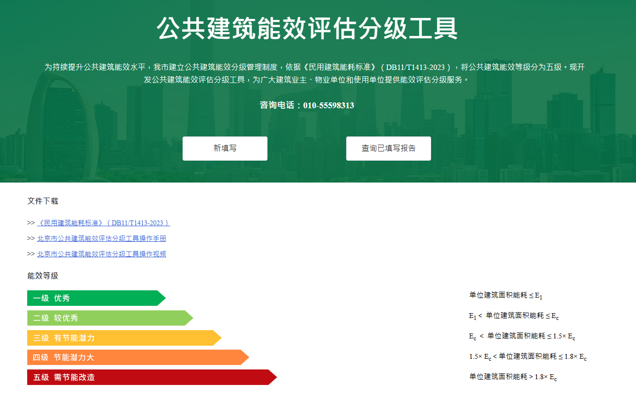圖 1:北京市政府設立了「公共建築效能評估分級工具」網站,讓業主申報建築物能效。